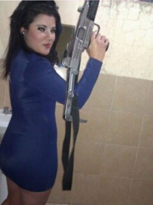 Una de las sexoservidoras que posaron con las armas de los policías. Foto: Especial
