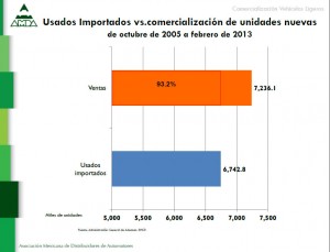 Usados importados contra unidades nuevas. Gráfica: AMDA