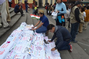 Xalapa: exhiben mantas bordadas con los nombres de periodistas asesinados. Foto: Noé Zavaleta