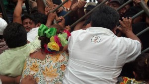 Campeche. Trabajadores se enfrentan con la policía. Foto: Especial