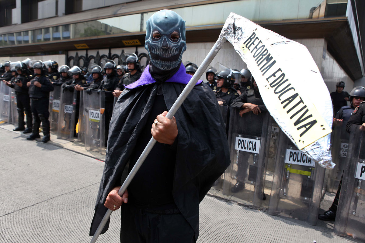 Maestros de la CNTE marchan en contra de la reforma educativa. Foto: Germán Canseco