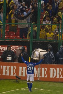 Teófilo Gutiérrez celebra su primera anotación contra el América. Foto: Xinhua / David de la Paz