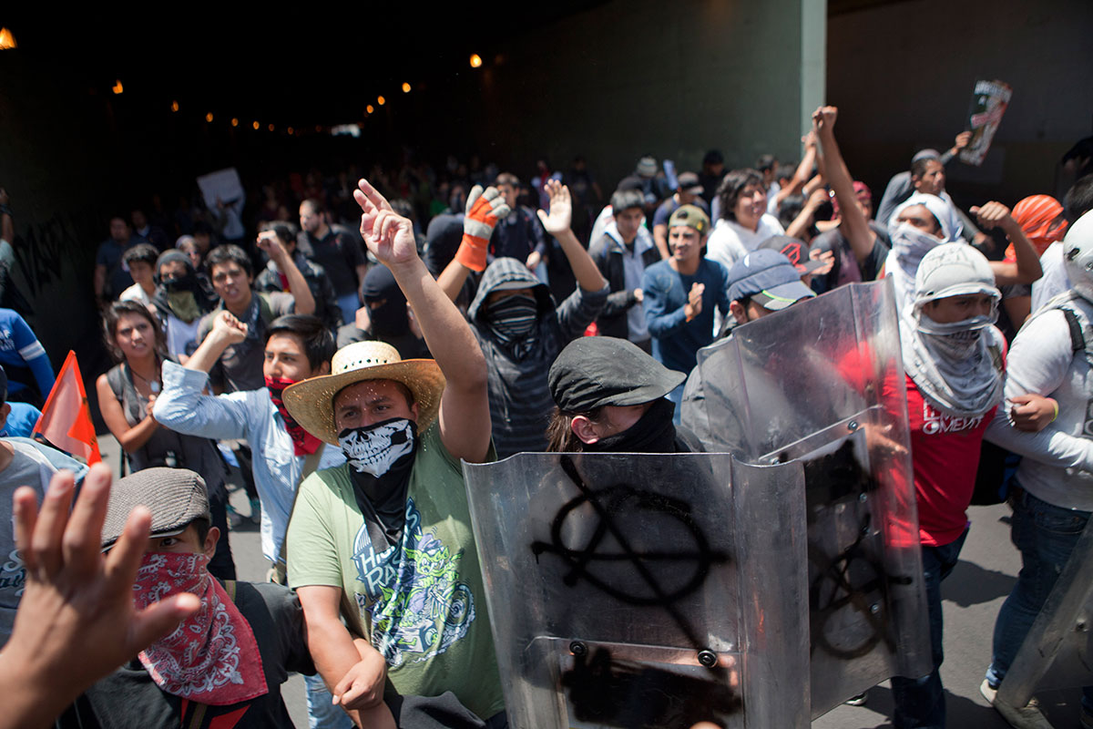#1Smx. Anarquistas y granaderos se enfrentan previo a la entrega del I Informe. Foto: Miguel Dimayuga