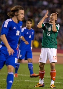 Oribe Peralta lamenta un gol fallado. Foto: Xinhua / Guillermo Arias