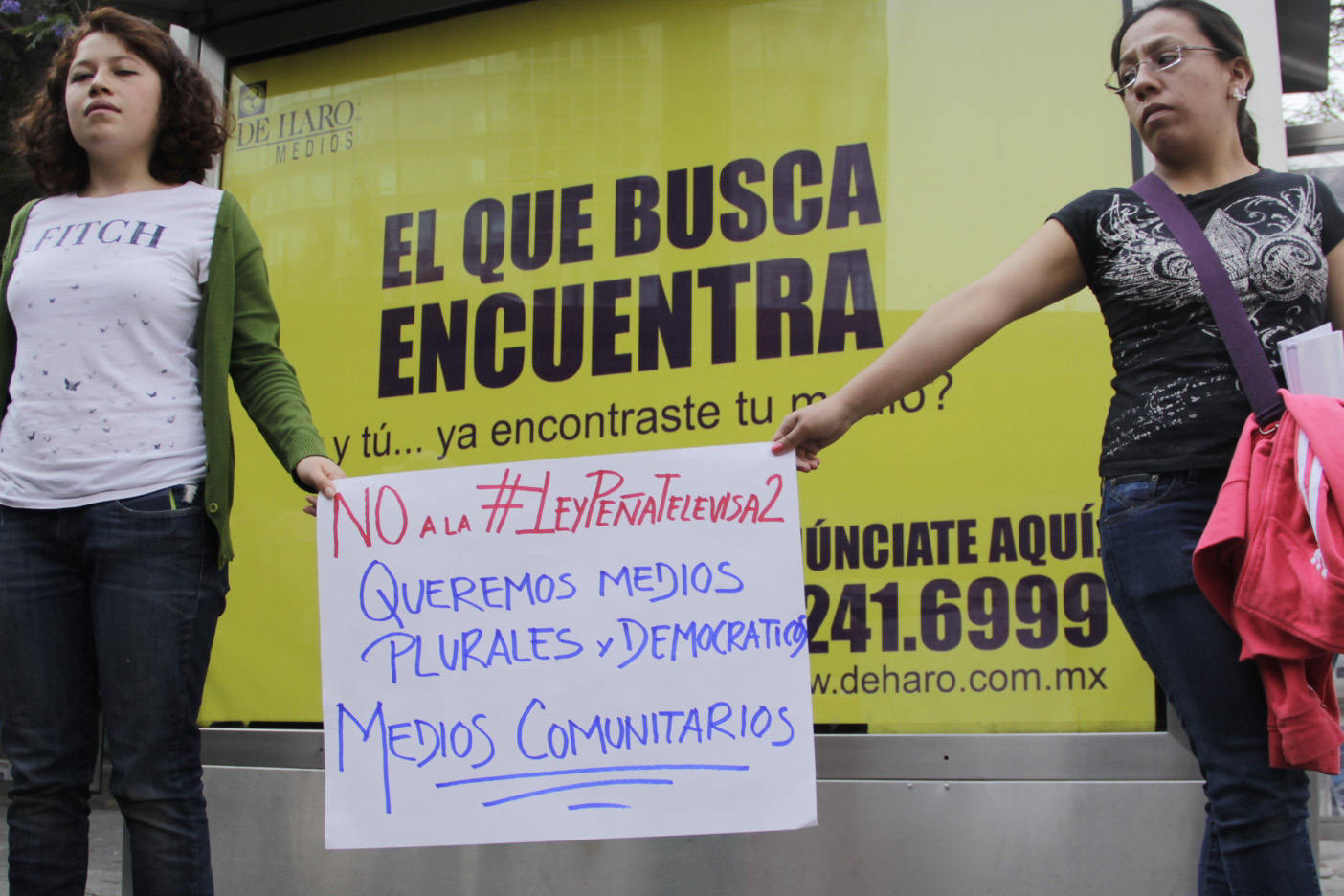 La protesta durante la cadena humana. Foto: Carlos Maruri