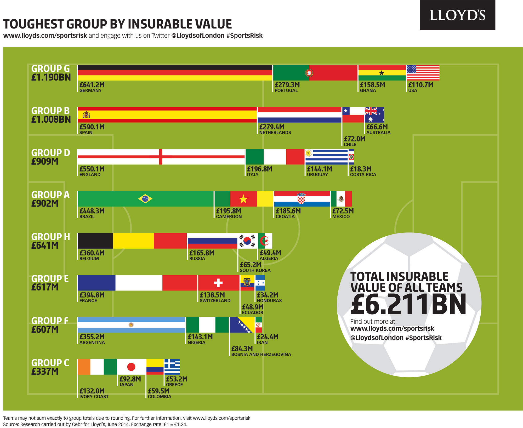 El valor de los seguros por grupo. Gráfico: Lloyd’s