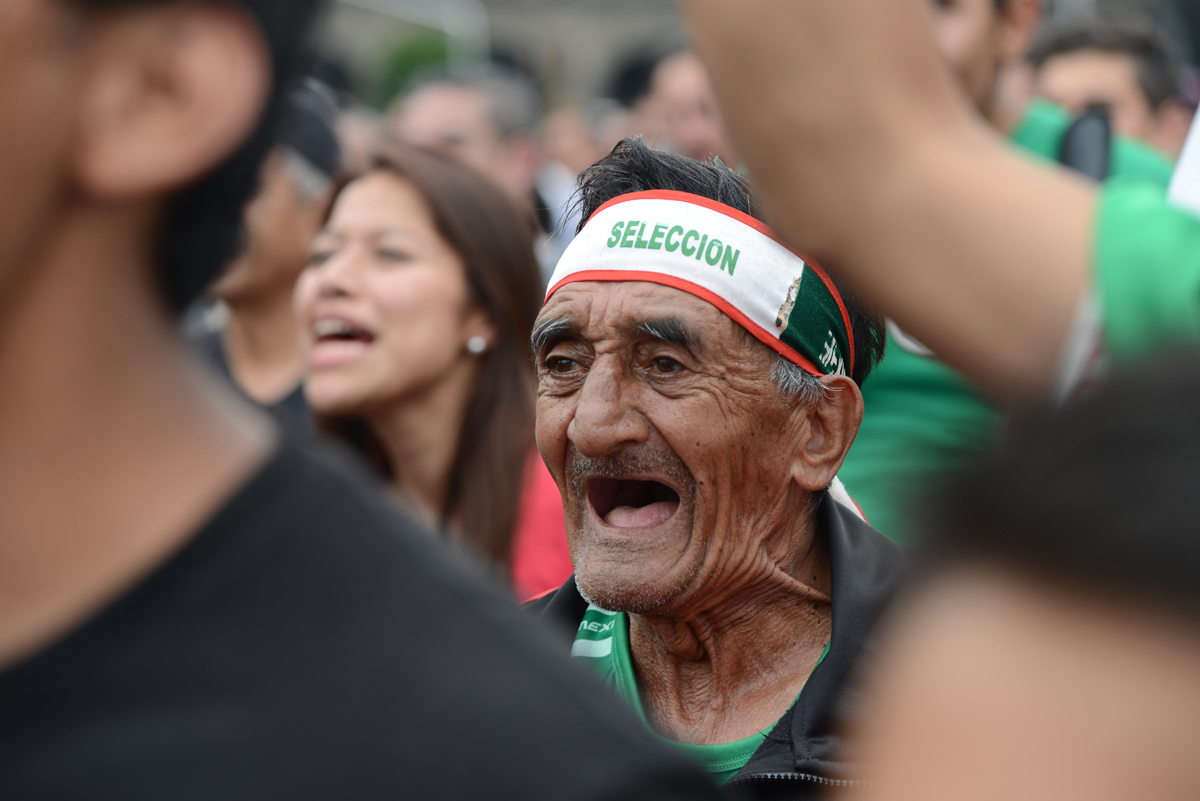 Aficionados celebran empate del Tri en el Zócalo capitalino. Foto: AP / Sean Havey