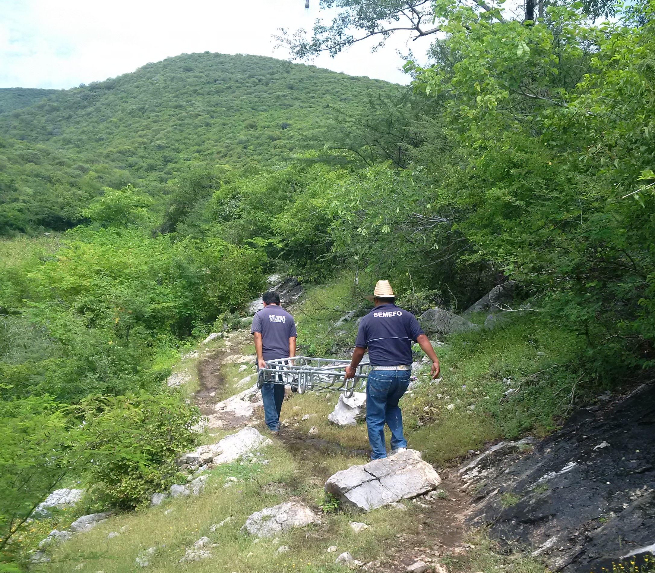 Elementos del Semefo trasladan camillas al lugar del hallazgo. Foto: Ezequiel Flores.