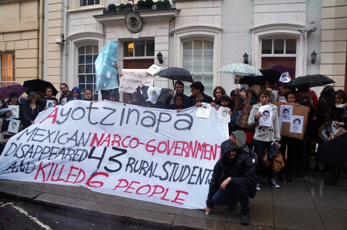 Londres. Estudiantes exigen esclarecer desapariciones de normalistas de Ayotzinapa. Foto: Especial