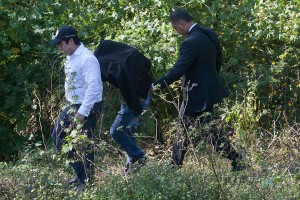 Policías detienen a un joven cerca de las fosas clandestinas en Cocula, Guerrero. Foto: Germán Canseco