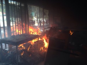 El incendio en las oficinas de la controlaría de la Secretaría de Educación estatal. Foto: Germán Canseco