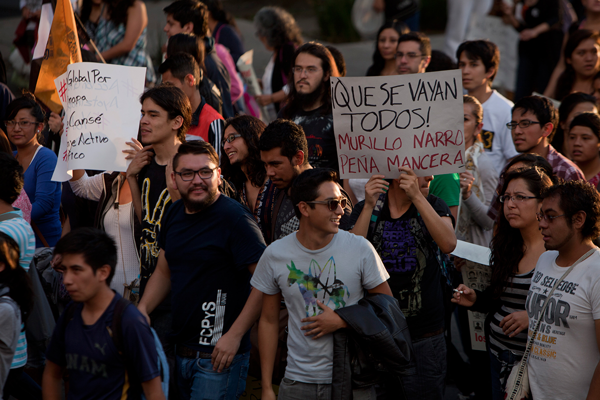 Miles exigen justicia por normalistas en el Monumento a la Revolución. Foto: Miguel Dimayuga