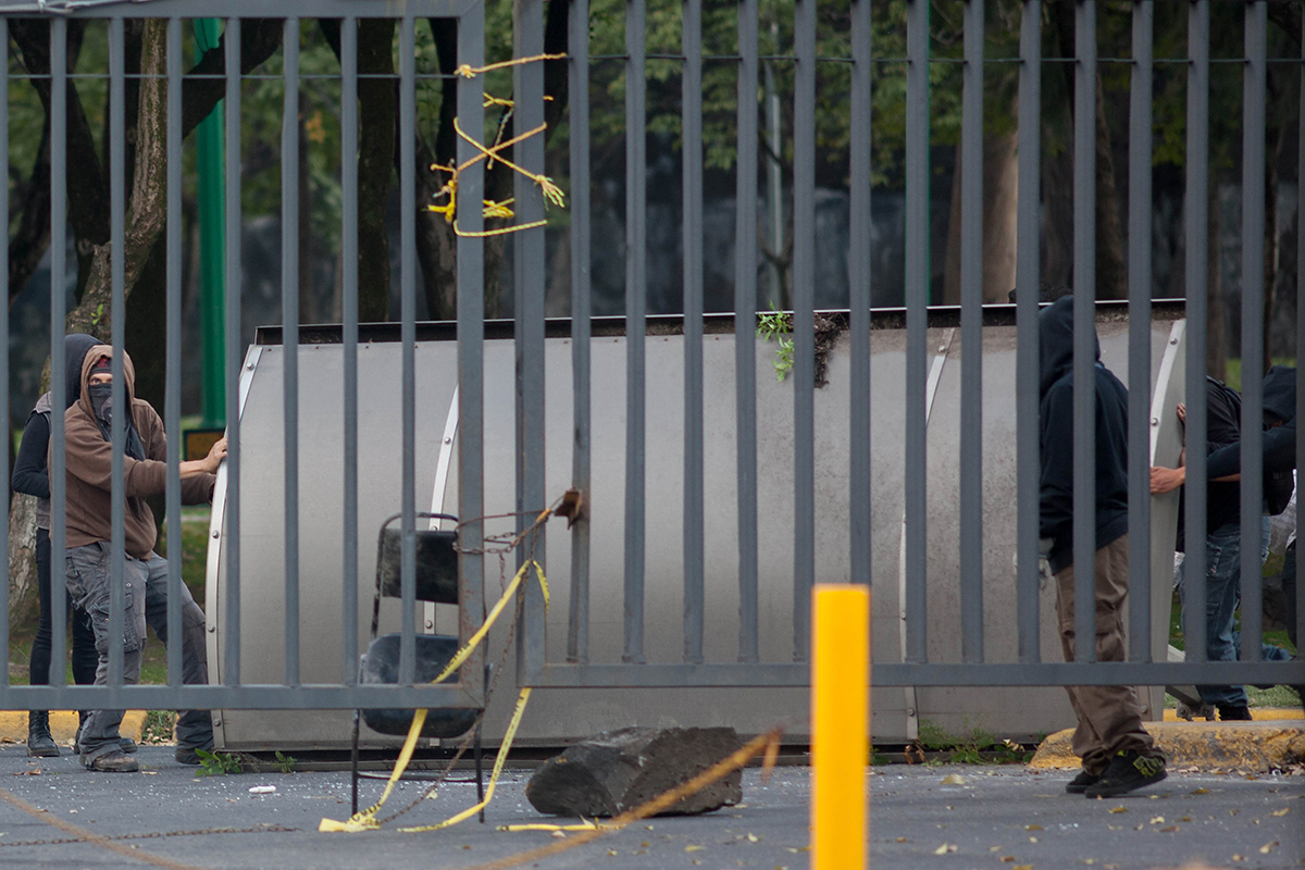 Encapuchados bloquean acceso a Ciudad Universitaria. Foto: Xinhua / Pedro Mera