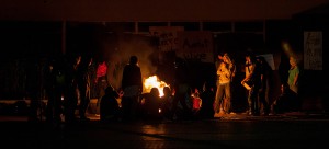 Estudiantes mantienen una fogata en Rectoría. Foto: Xinhua / Pedro Mera