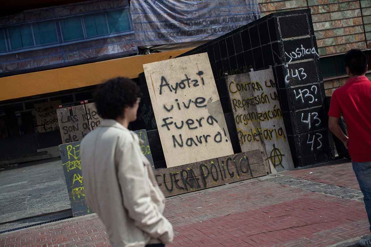 Encapuchados abandonan barricada en Rectoría. Foto: Alejandro Saldívar