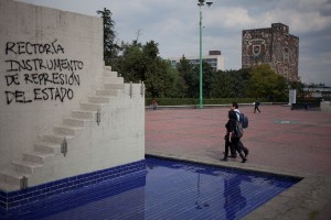Encapuchados abandonan barricada en Rectoría. Foto: Miguel Dimayuga