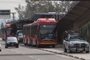 Patrullas custodian el Metrobús en Ciudad Universitaria. Foto: Miguel Dimayuga
