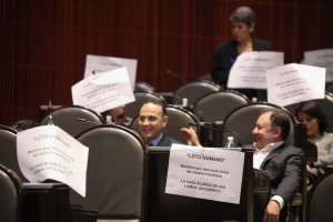 Diputados del PRD protestan contra “Casa Blanca” en San Lázaro. Foto: Octavio Gómez