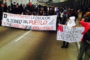 Jóvenes encapuchados marchan rumbo al aeropuerto. Foto: Miguel Dimayuga