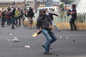 Encapuchados se enfrentan con granaderos cerca del Aeropuerto. Foto: Miguel Dimayuga