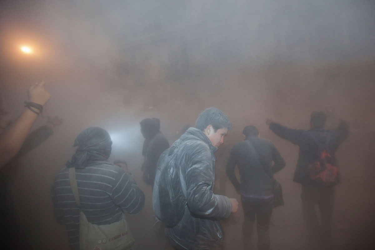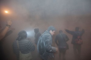 #20NovMx. Encapuchados se enfrentan con granaderos en el Zócalo. Foto: Octavio Gómez