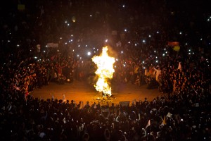 La quema de una figura de Peña Nieto en el Zócalo capitalino. Foto: Eduardo Miranda