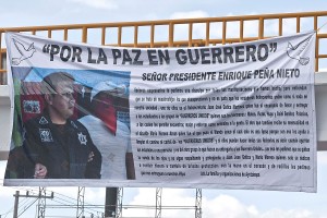 Acusan en mantas a alcalde priista de Chilpancingo por desaparición de normalistas. Foto: Germán Canseco