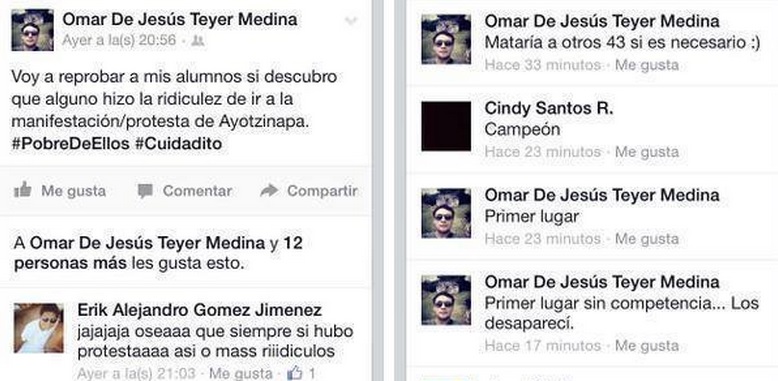 Maestro amenaza en Facebook con reprobar a alumnos si van a marcha por Ayotzinapa