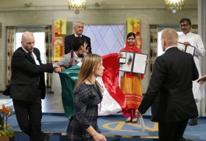 Adán Cortés Salas, estudiante de la Facultad de Ciencias Políticas y Sociales de la UNAM, irrumpió hoy en la ceremonia de entrega del Nóbel de la Paz en Oslo. Foto: AP