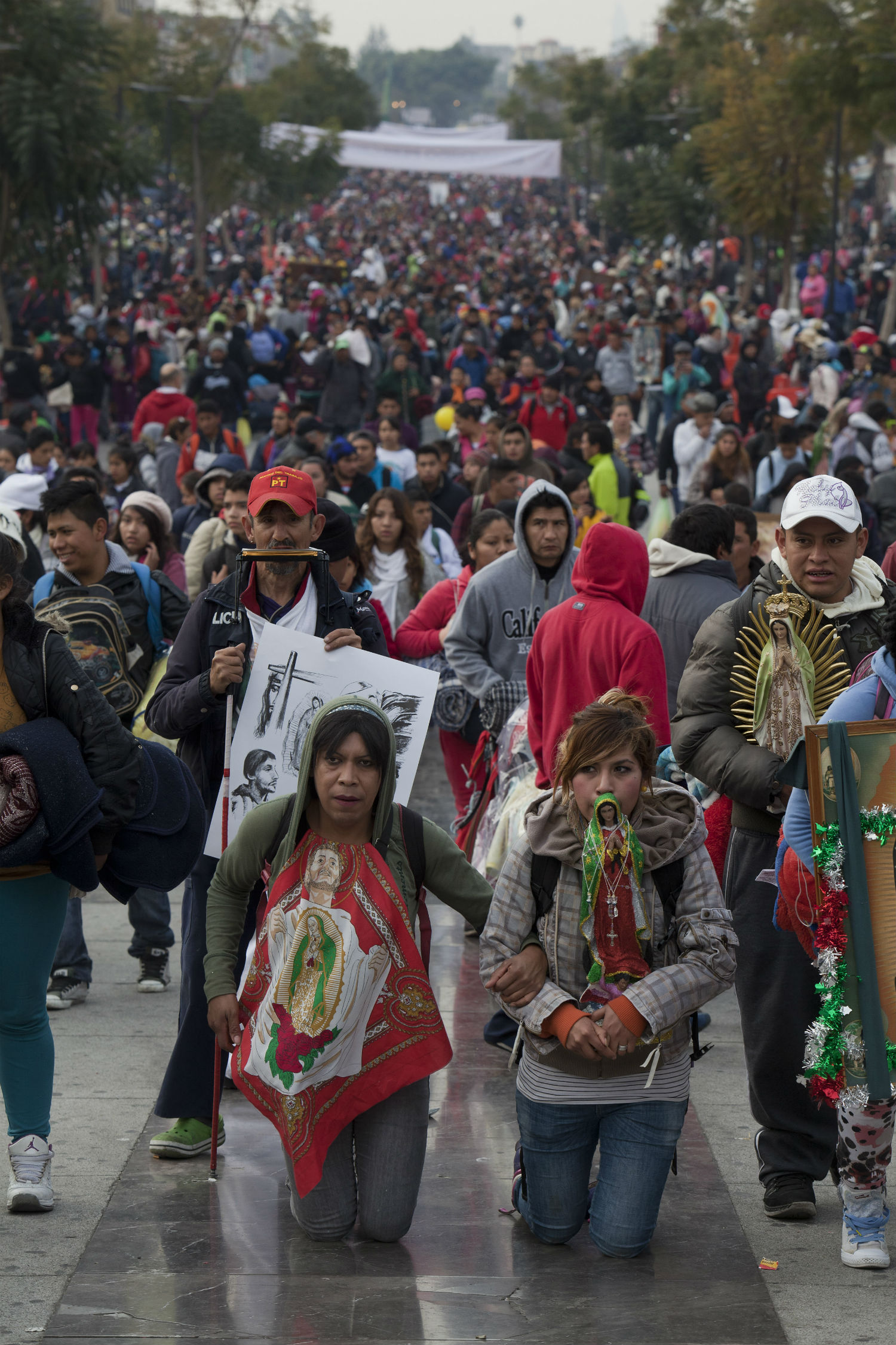 Miles de peregrinos acuden a la Basílica de Guadalupe; algunos realizan el recorrido de rodillas. Foto: Miguel Dimayuga