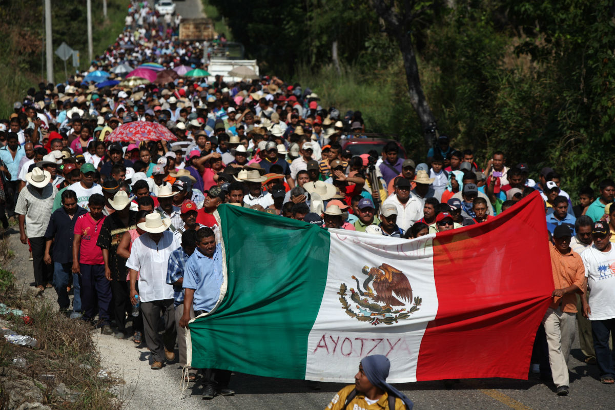 Marcha de autodefensas y normalistas en Ayutla, Guerrero para exigir la salida del Ejército. Foto: Octavio Gómez