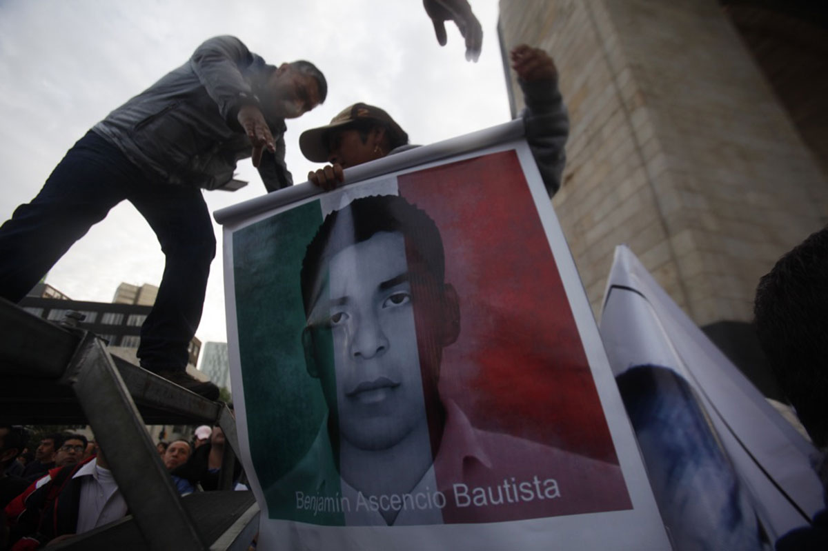 Piden justicia para normalistas en el Monumento a la Revolución. Foto: Germán Canseco