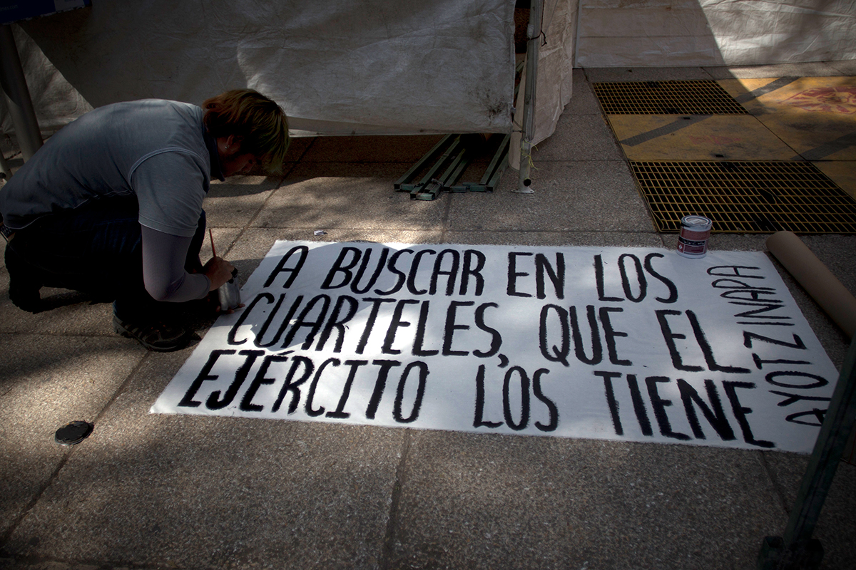 Simpatizantes de normalistas instalan plantón afuera de la PGR. Foto: Xinhua / Alejandro Ayala