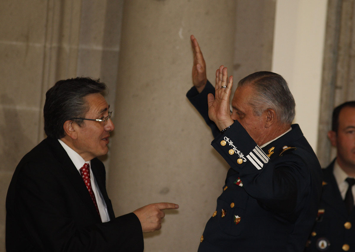 Tenso diálogo entre el ombudsman González y Cienfuegos en Palacio Nacional. Foto: Eduardo Miranda