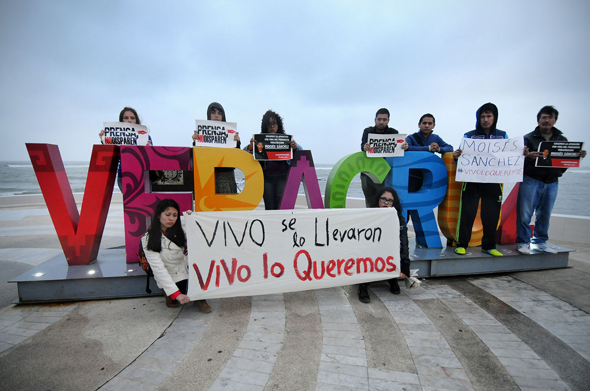 Reporteros exigen en Veracruz la aparición con vida de Moisés Sánchez. Foto: Yahir Ceballos