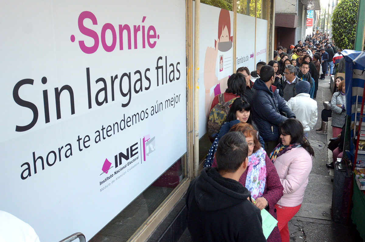 Largas filas para obtener la nueva credencial del INE. Foto: David Deolarte