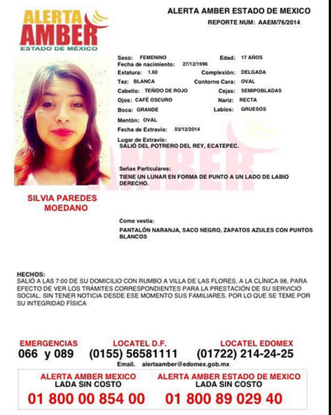 La ficha de búsqueda de Silvia Paredes Muedano. Foto: Especial