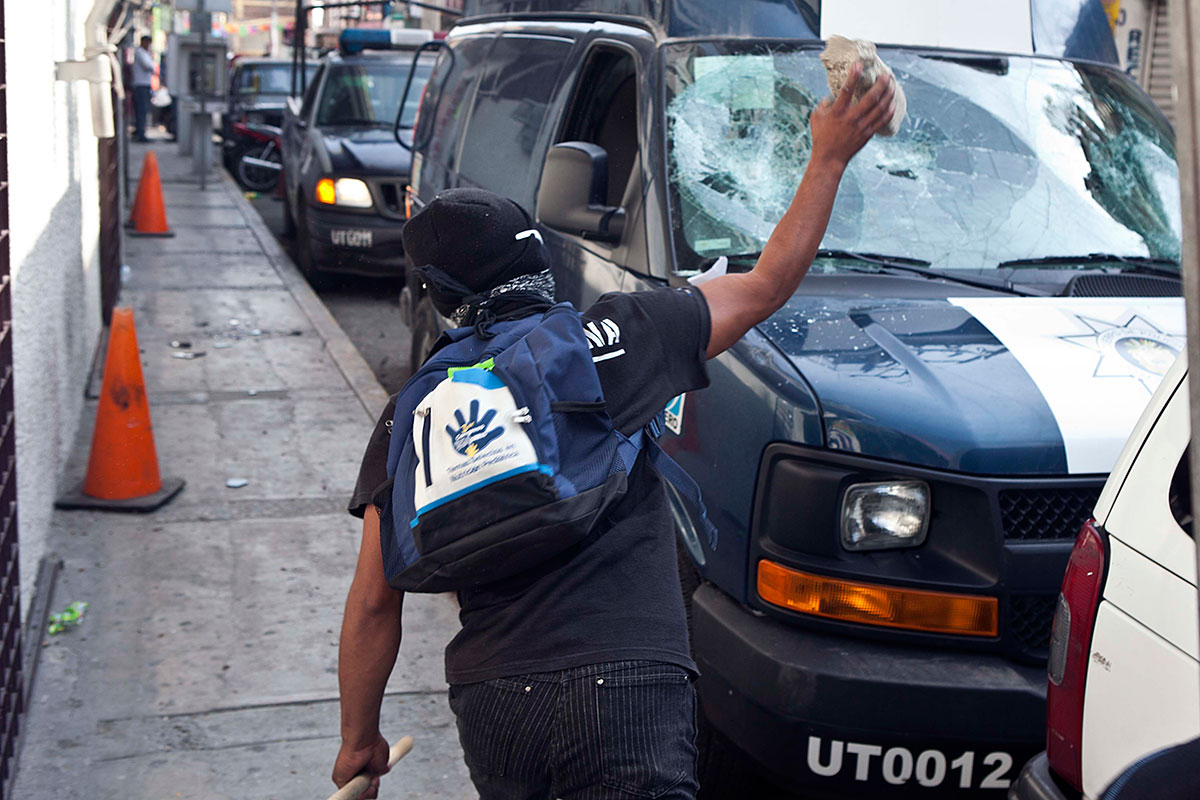 Manifestantes queman patrulla y se enfrentan a la policía en Chilpancingo. Foto: Germán Canseco