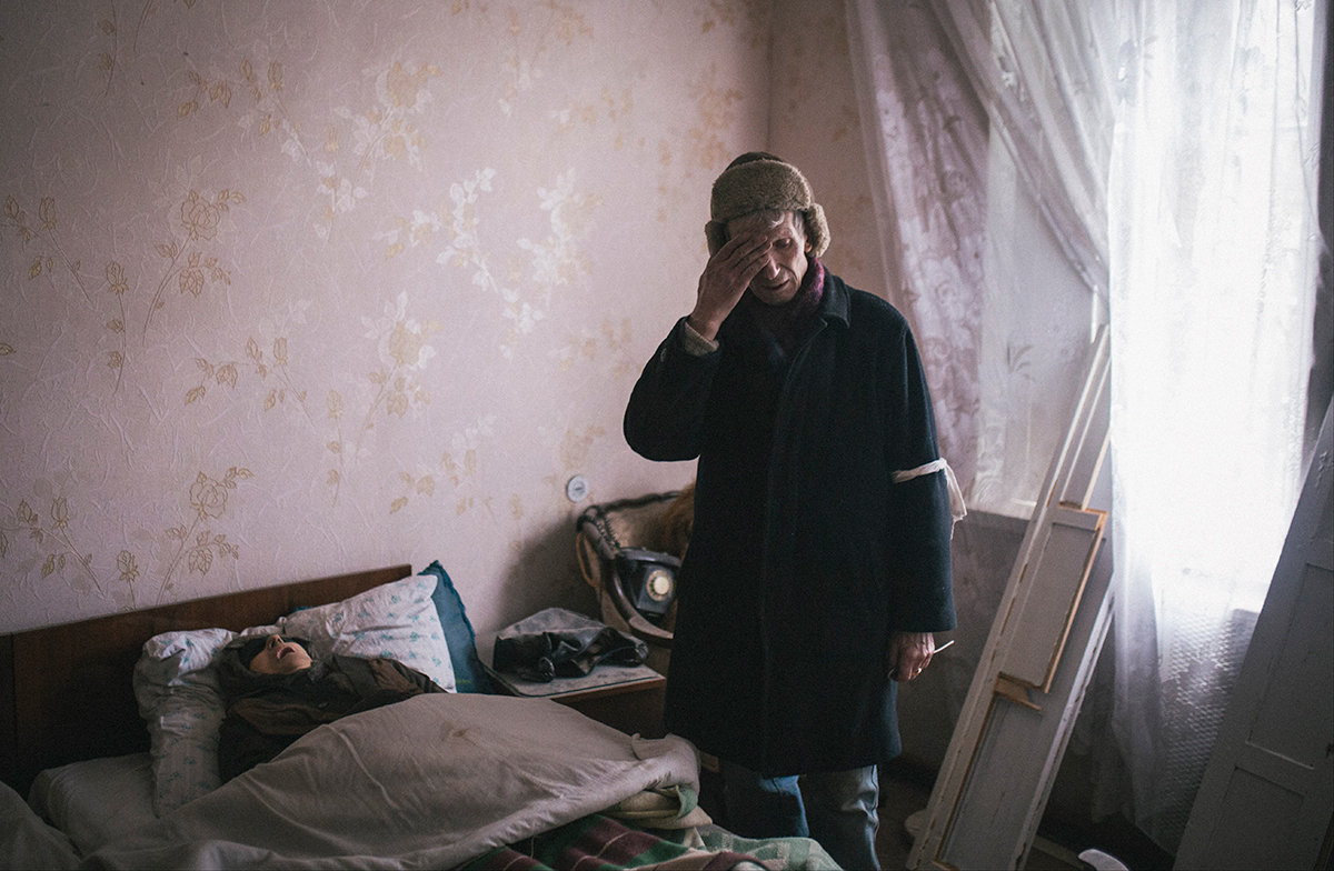 Un hombre llora la muerte de su esposa en el este de Ucrania. Foto: AP