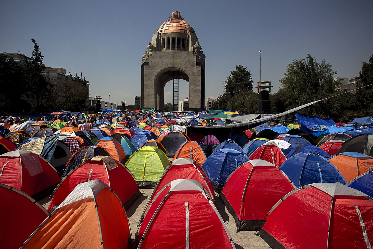 Maestros de Oaxaca instalan campamento en el Monumento a la Revolución. Foto: Xinhua / Alejandro Ayala
