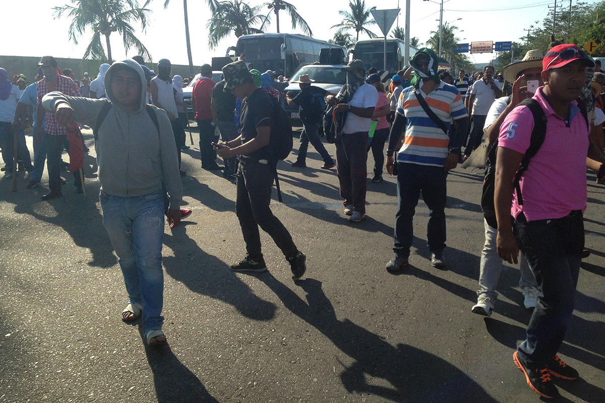 Normalistas bloquean acceso al aeropuerto de Acapulco. Foto: Miguel Dimayuga