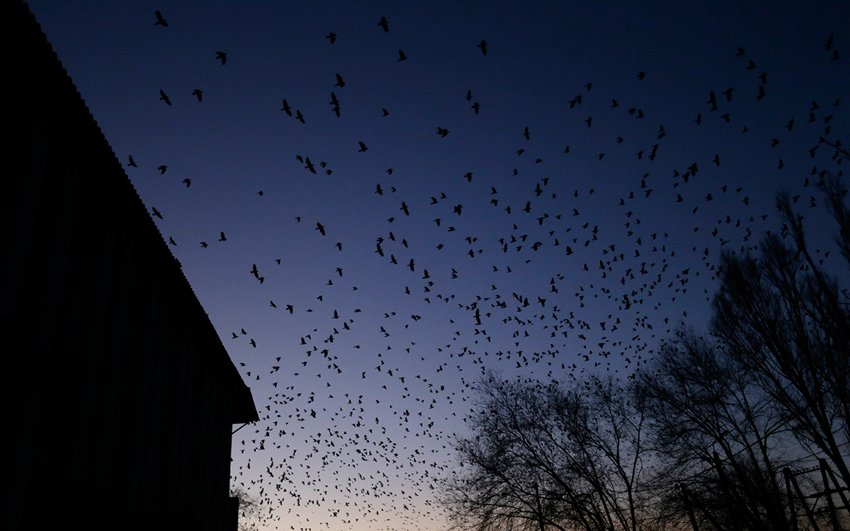 Una parvada al atardecer en Artemivsk, Ucrania. Foto: AP / Petr David Josek