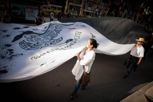La novena acción global por Ayotzinapa en avenida Reforma. Foto: Xinhua / Pedro Mera