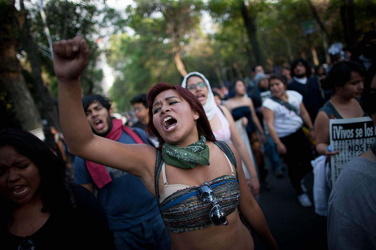 A cinco meses de Iguala, miles marchan en el DF. Foto: Xinhua / Pedro Mera