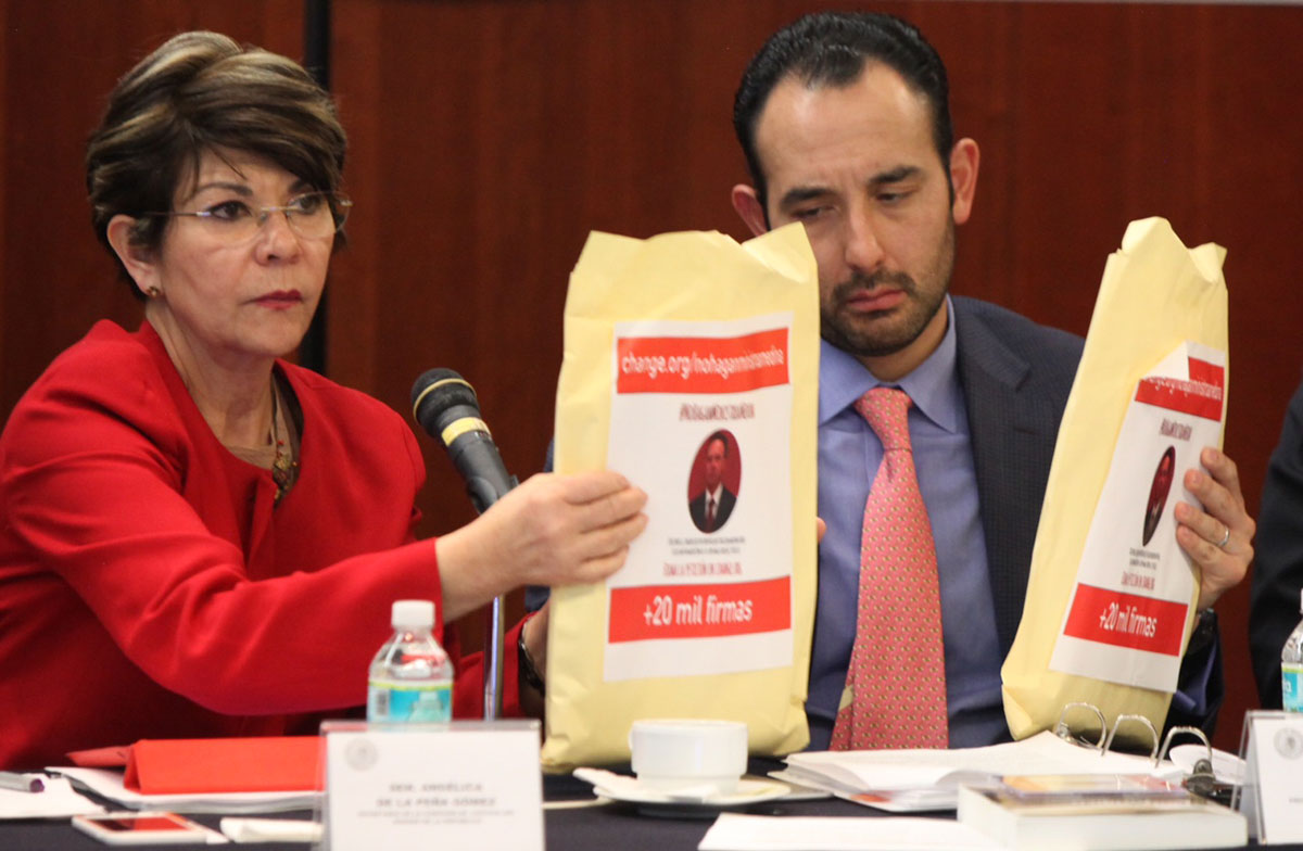 Presentan firmas contra candidatura de Medina a la Corte. Foto: Octavio Gómez