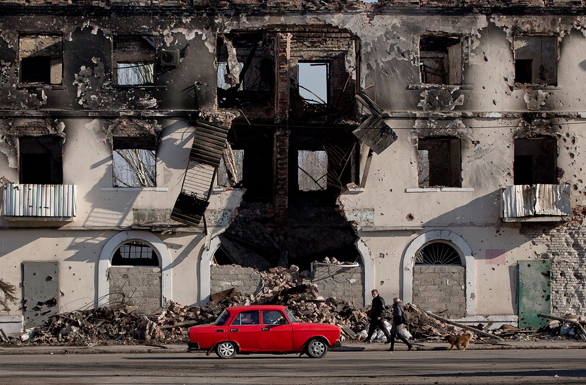 Un edificio destruido en Vuhlehirsk, Ucrania. Foto: AP / Vadim Ghirda