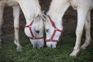 Dos caballos comen en un predio de Tepojaco, Hidalgo. Foto: AP / Rebecca Blackwell