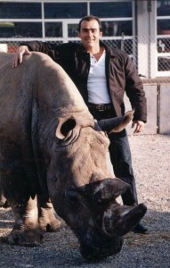 Bruno Raffo con un rinoceronte. Foto: Cortesía Bruno Raffo