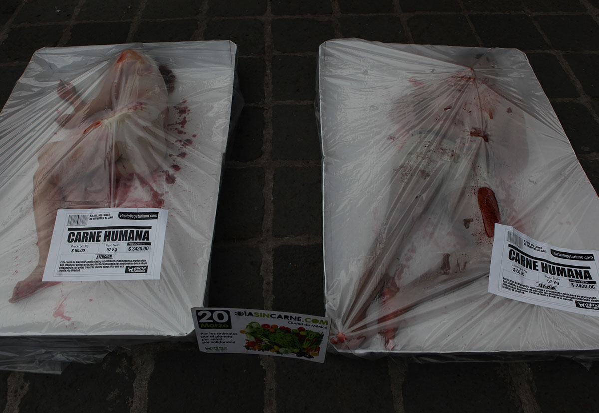Activistas de AnimaNaturalis protestan contra el consumo de carne. Foto: Octavio Gómez