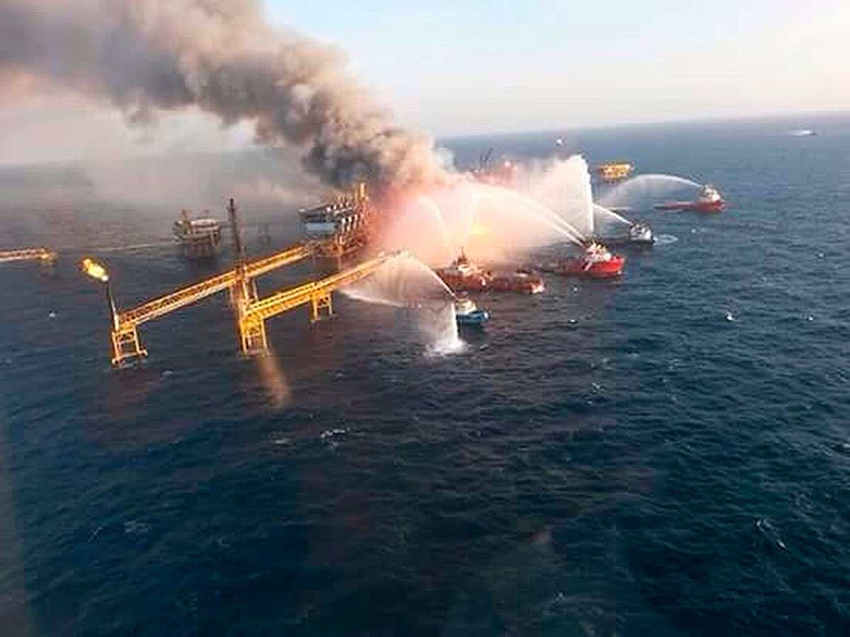 Se incendia plataforma de Pemex en Campeche. Foto: Xinhua
